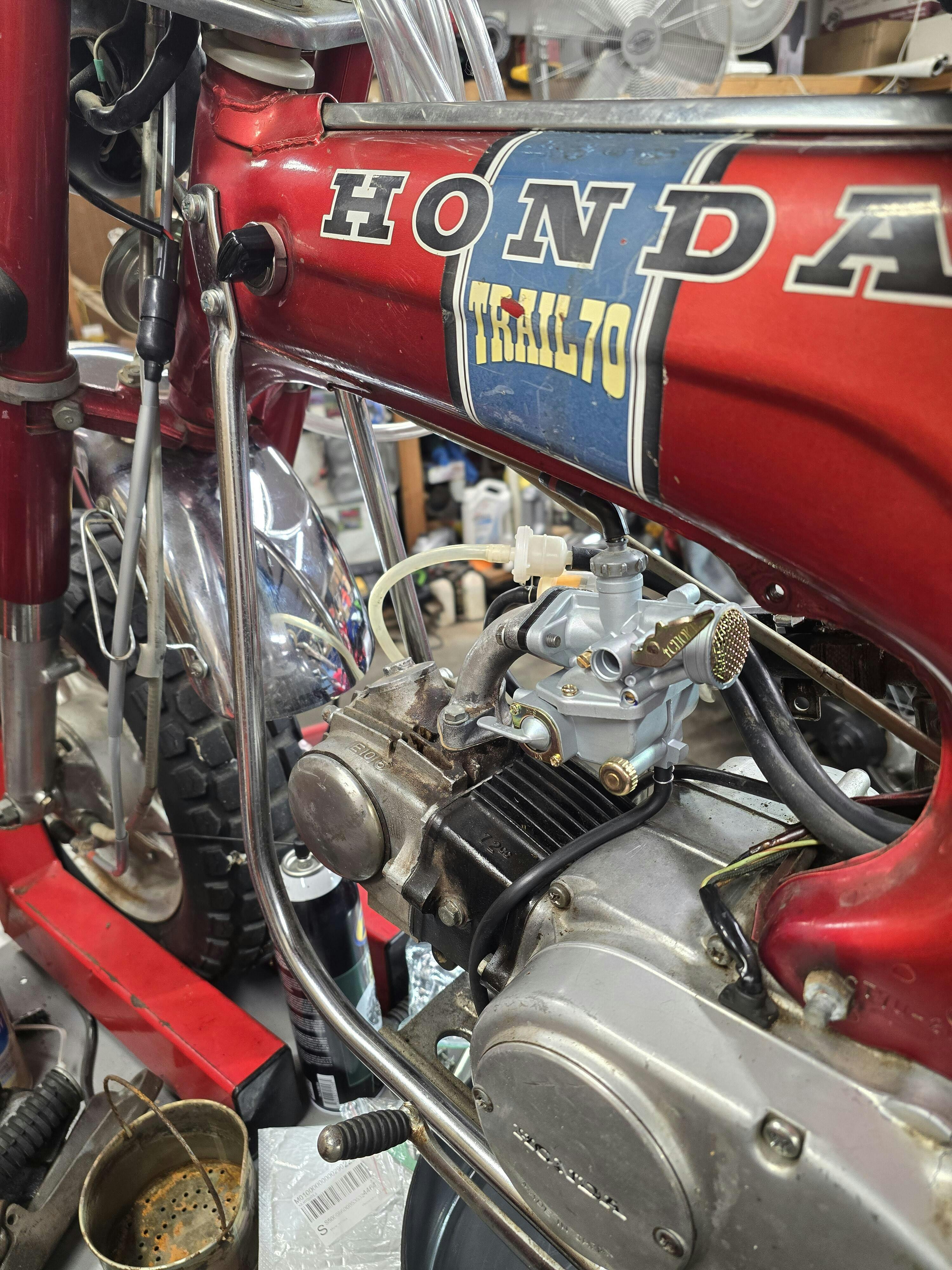 New Aftermarket CT70 K0-77 Carburetor – Very high quality and virtual exact reproduction of the discontinued OEM carb down to all the brass parts. Almost all parts are interchangeable with the OEM carb as well. It also comes with a reproduction gray throttle cable for the K0-K3 models. For, the later models the stock cable will work perfectly. The main jet is a #60, pilot is a #35, and its preset from the factory to run perfectly out the box for most conditions. Bolt on and go!